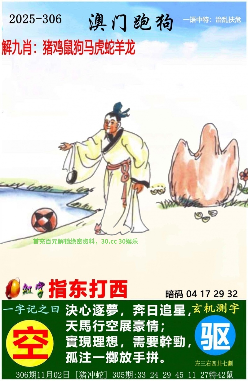 | 306期:九肖 | 鼠狗蛇马虎鸡牛猴羊 | 牛17中 |