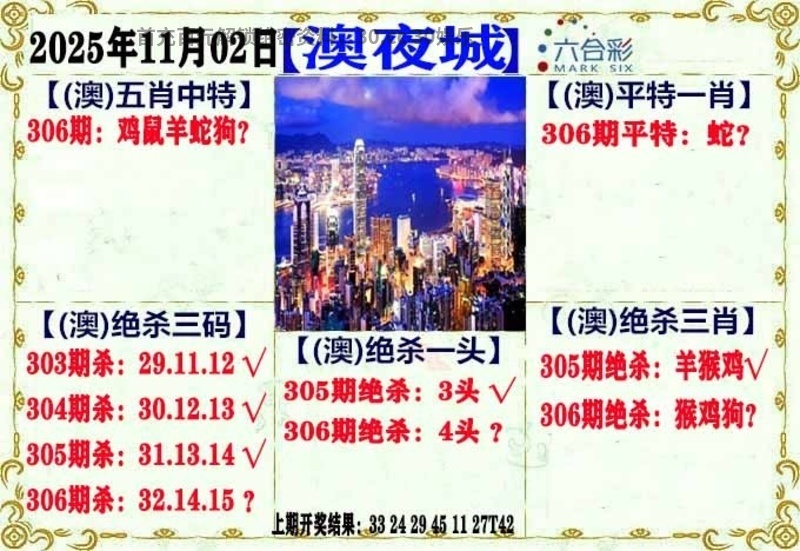 | 306期:七肖 | 鼠狗蛇马虎鸡牛 | 牛17中 |