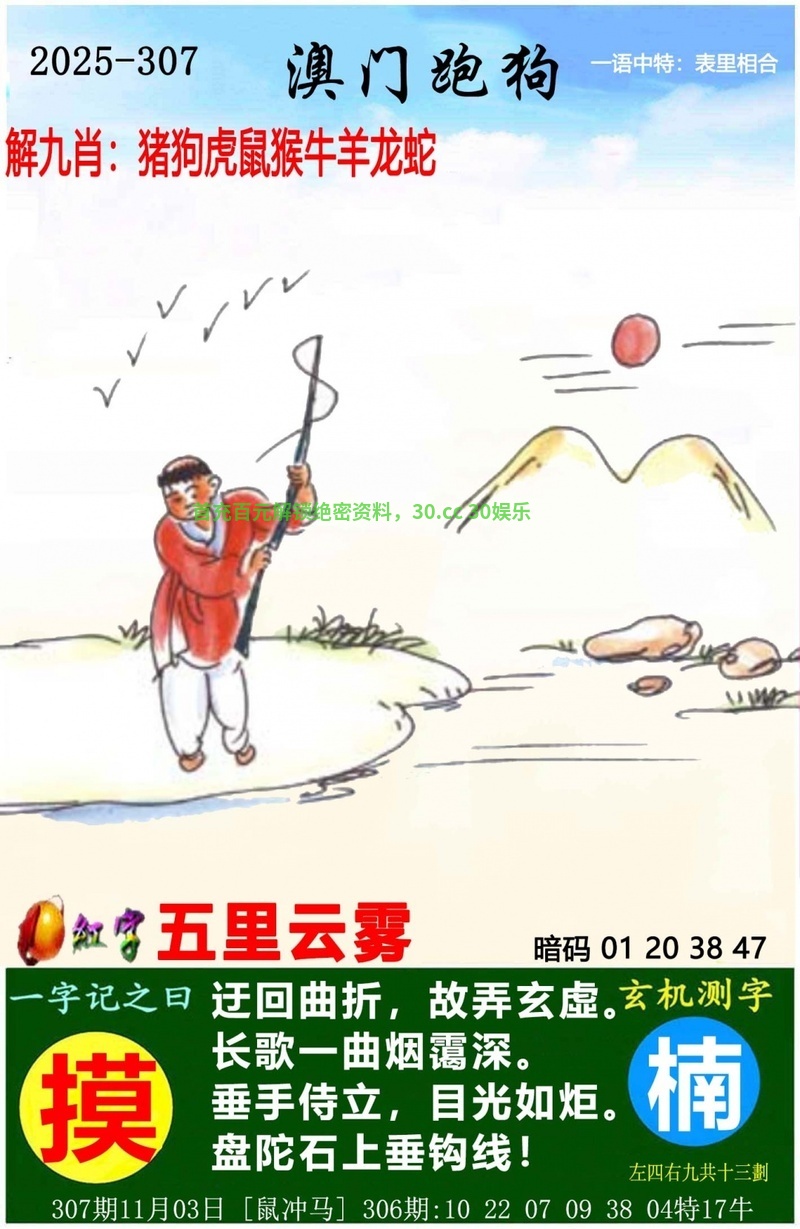 | 307期:九肖 | 龙猪蛇马猴羊虎狗兔 | 狗20中 |